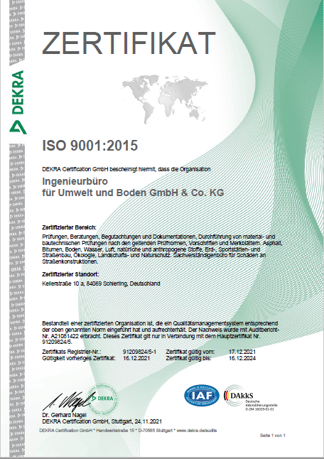 2009 konnten wir die Zertifizierung unseres Qualitätsmanagement-systems entsprechend der ISO 9001 durch die DEKRA erreichen.